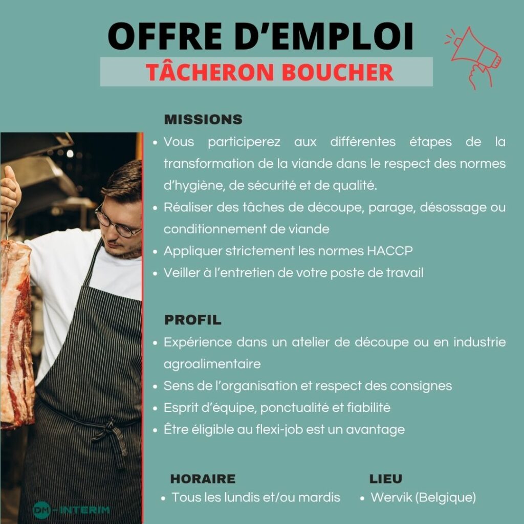 - Vous participerez aux différentes étapes de la transformation de la viande dans le respect des normes d’hygiène, de sécurité et de qualité.