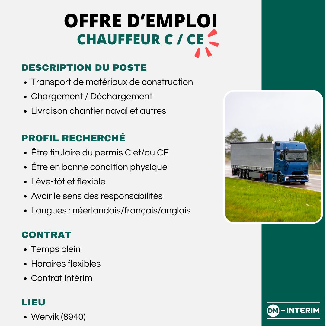 - Être titulaire du permis C et/ou CE