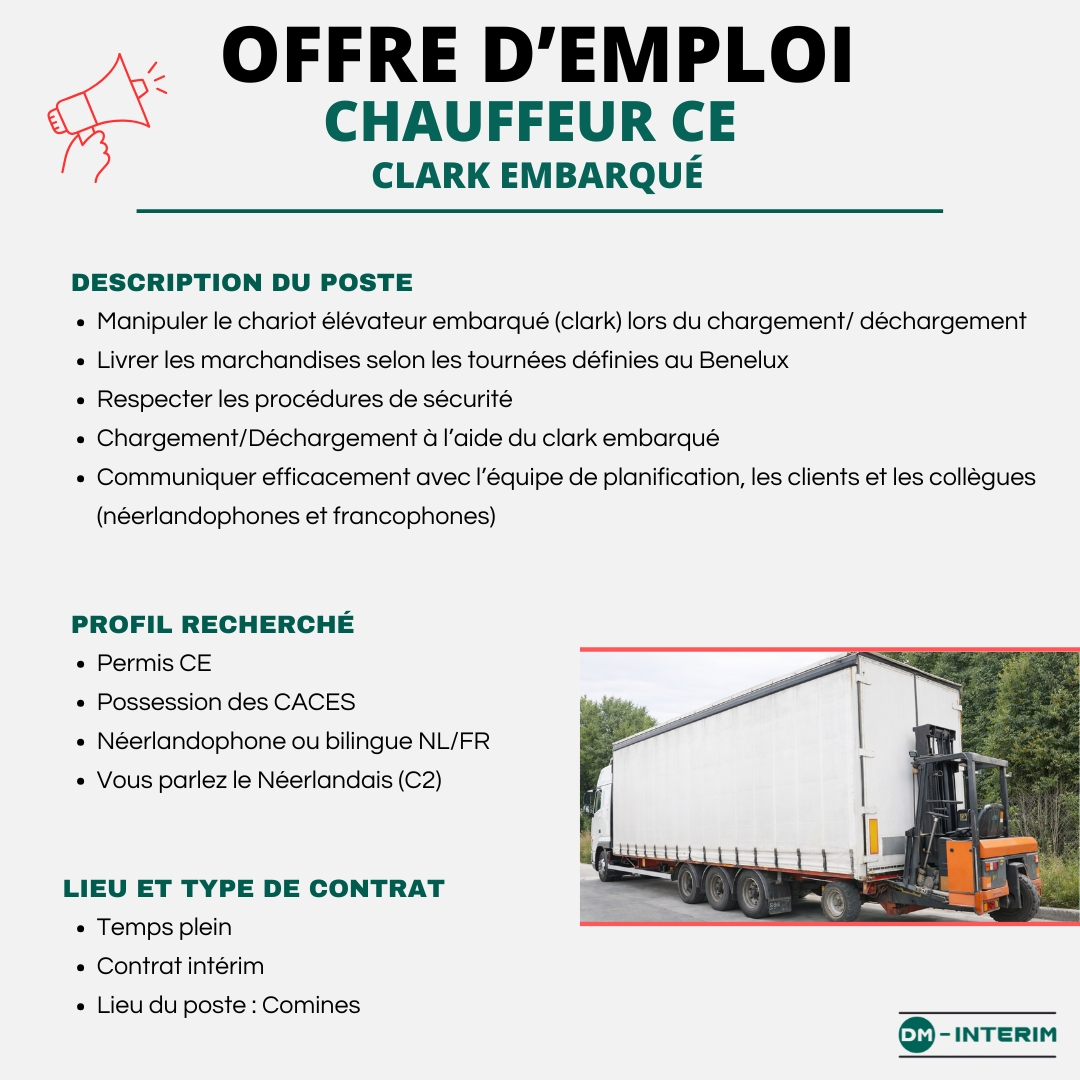- Manipuler le chariot élévateur embarqué (clark) lors du chargement/ déchargement